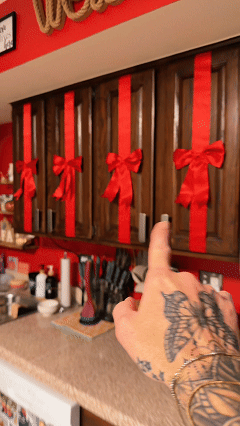 🎄 Festive Home Decoration·Holiday Christmas Cabinet Door Fringe: This Lime Red Large Bow Wreath is perfect for adding a festive touch to your home. 🎅